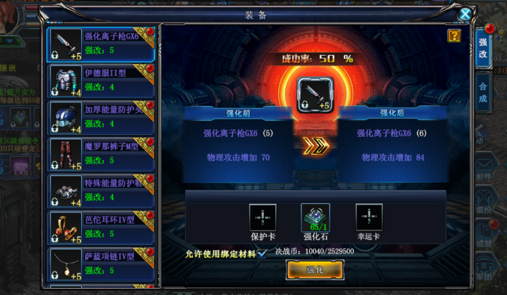 强化6级及以上:必须使用保护券,否则失败后装备会破碎