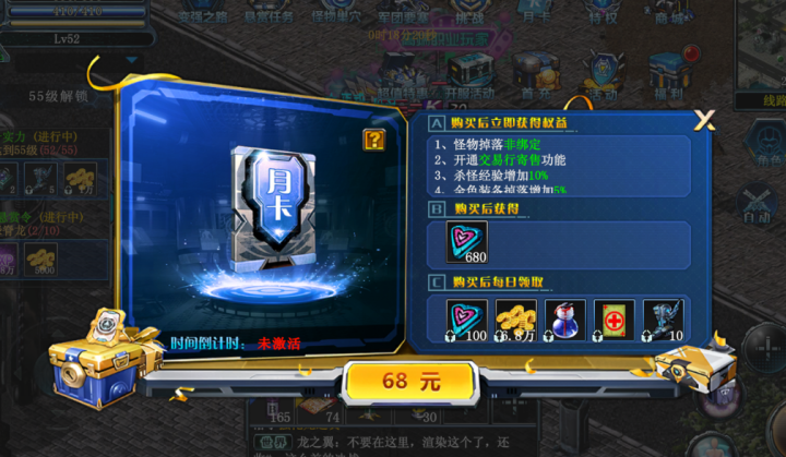 月卡(68米)绝对是性价比之选,包含以下超值特权: